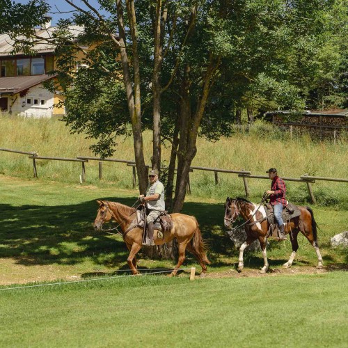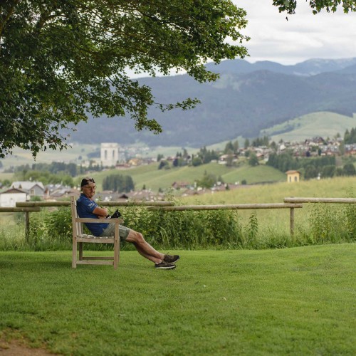 Il percorso si snoda tra il verde dei prati e la maestosità di larici e abeti, con un andamento estremamente vario.