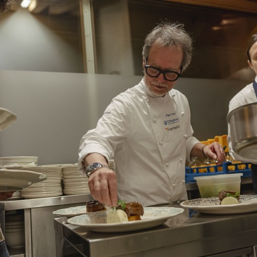 20:00 Cena di Gala a quattro mani con i rinomati Chef Giancarlo Morelli, Peter Brunel, Marcantonio Sagramoso e lo Chef Patissier Diego Crosara.