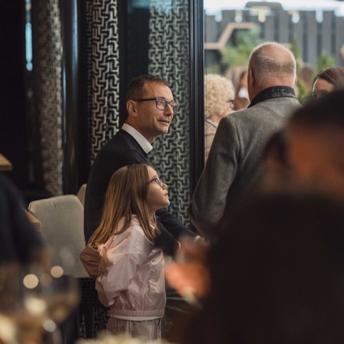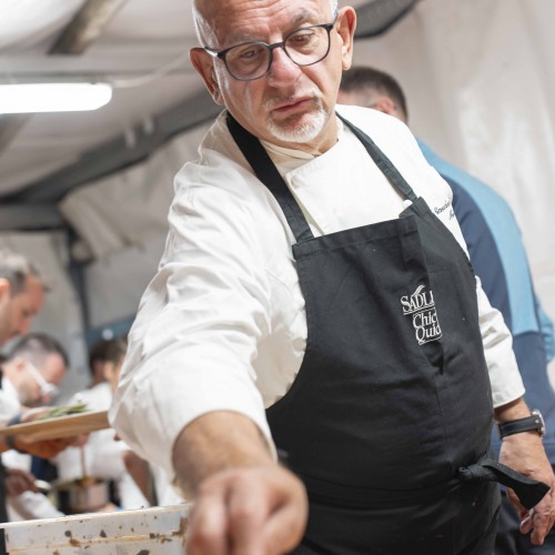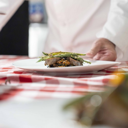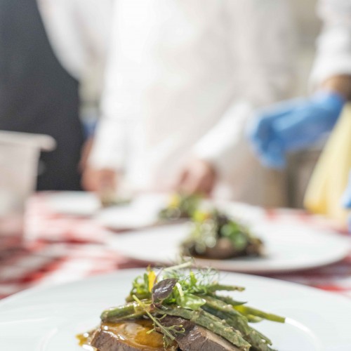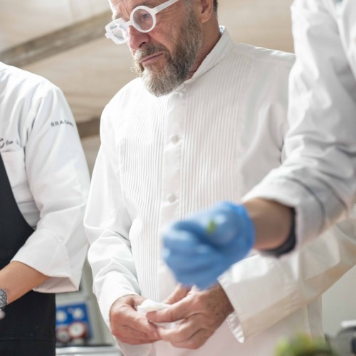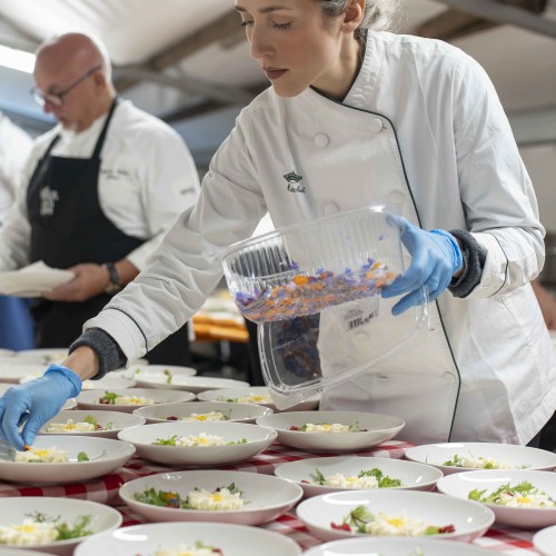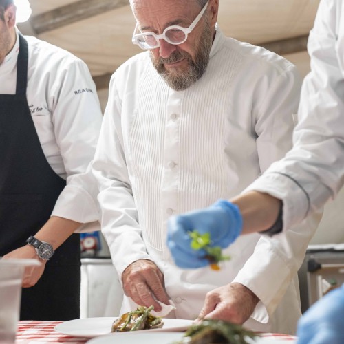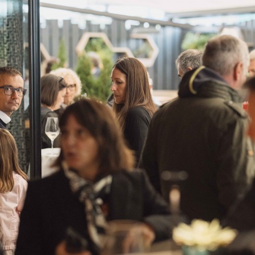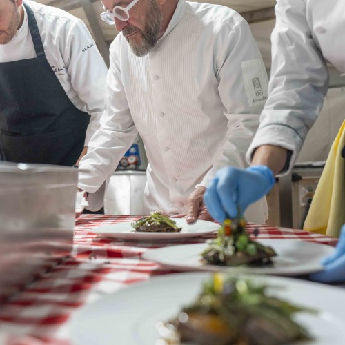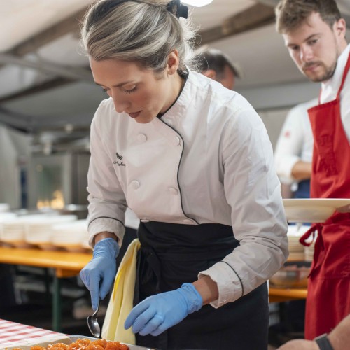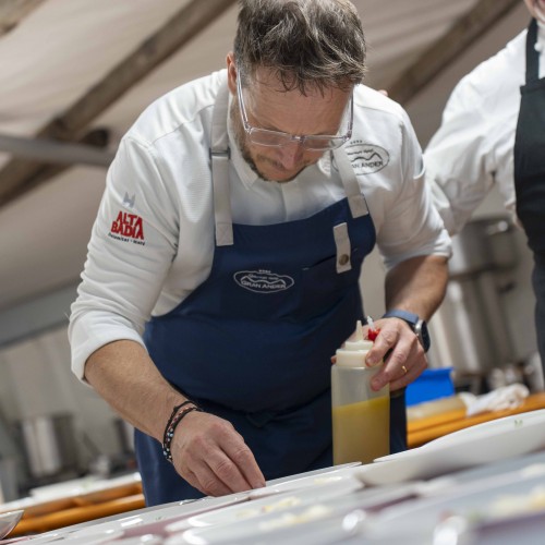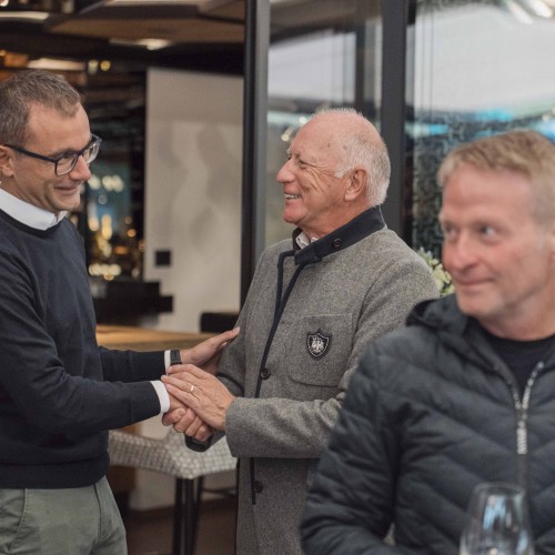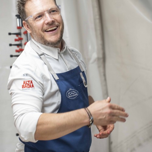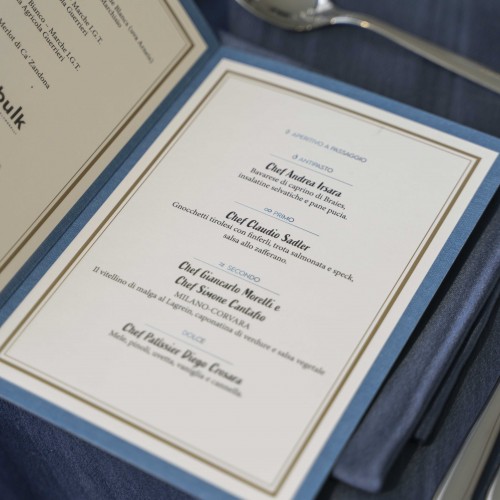 Cena di gala nella suggestiva location della Terrazza di Coppa del Mondo di Sci a La Villa in Badia a cura degli Chef Giancarlo Morelli, Claudio Sadler, Simone Cantafio, Andrea Irsara e Diego Crosara.